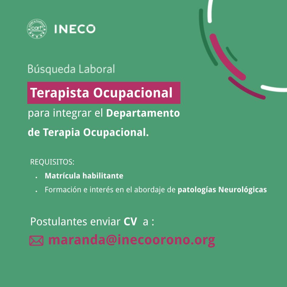 INECO Neurociencias Oroño abre convocatoria a profesionales: Terapista Ocupacional.